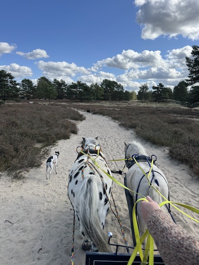 Einen besonders schönen sonnigen Tag haben wir dann noch genutzt, um mit Magic und Stippels im Zweispänner eine Tagesfahrt zu machen. Wir fuhren mit dem Pferdeanhänger bis nach Nemitz. Hier beginnt ein herrliches Heidegebiet. Zwar war die Heideblüte schon fast vorbei, aber die Mischung aus Sand, blauem Himmel, Heide und Wald hatte unbedingt etwas von Urlaub. Unser Ziel nach 23km war Gartow. Hier sind wir noch ein bisschen am See entlanggefahren und dann ging es per Auto wieder zurück nach Hause. Ein echter Urlaubstag mit unseren Pferden.