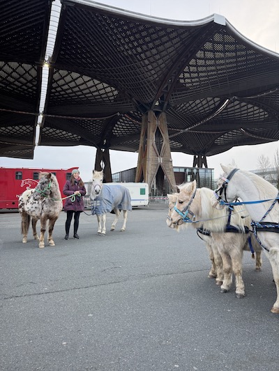 Der Dreispänner wurde auch optimiert, an Leinen und Geschirren rumgeschnallt und rumgebastelt und schließlich war es soweit: Am 4.12. packte ich drei frisch gewaschene, geföhnte und warm eingepackte Pferde auf den Hänger und fuhr ganz alleine und mit klopfendem Herzen nach Hannover. Und es stellte sich in den Tagen wieder einmal heraus, ich kann mich zu hundert Prozent auf meine Pferde verlassen und sie sich auf mich.