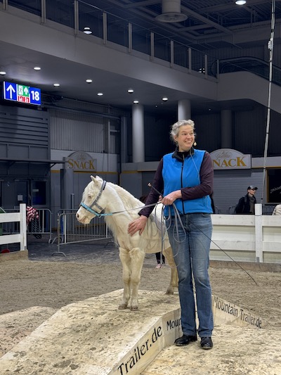 Meine größte Sorge war, wie die Pferde auf die vielen Menschen in der großen Halle reagieren würden, auf Lichter, Krach, Musik, Applaus, etc. Also kaufte ich spontan ein Discolicht und spielte jeden Abend Musik und Applaus in meinem Stall ab. Meine Pferde wundern sich über gar nichts mehr.